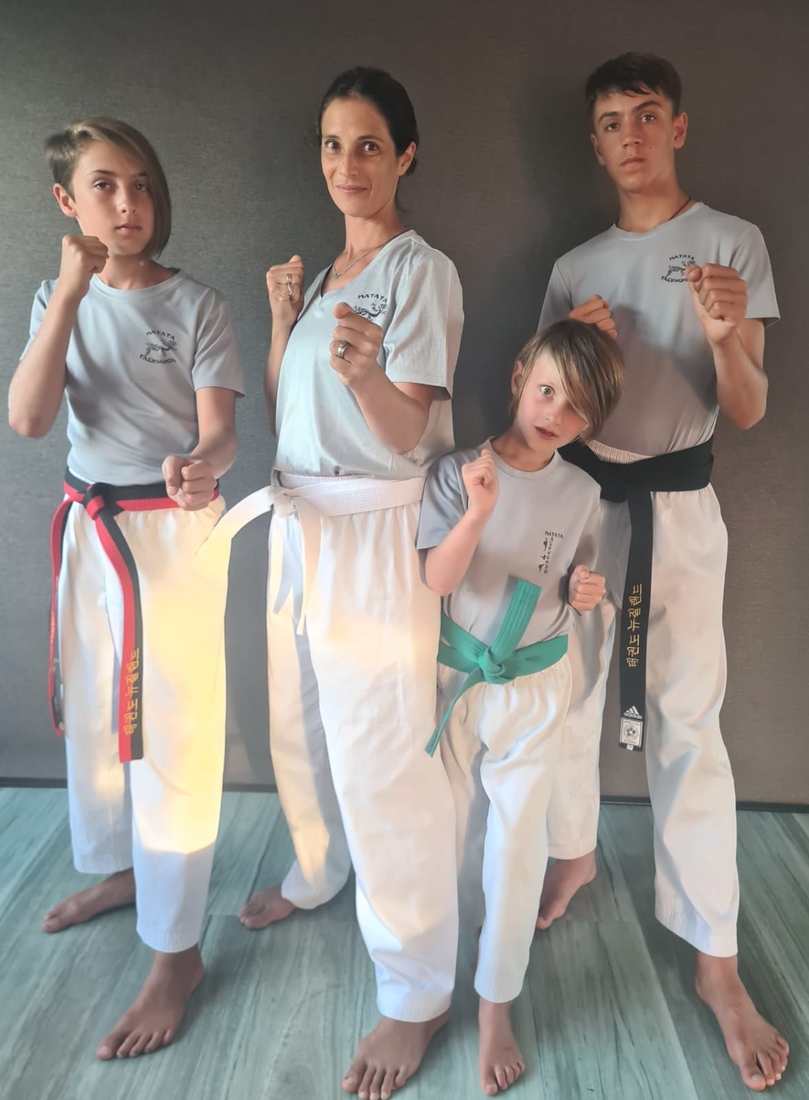 Now on Monday and Thursday nights, I step out the door with them. And my body has not broken yet. Our Master Tama (& Anton, our instructor) serve up an intense regime: we warm up with army-like drills, then there’s power punching and kicking, patterns are practiced with precision with regular push ups (on knuckles) and sit-ups (optional legs vertical in the air) are routinely imposed for the smallest of missteps. Everything aches and burns. Sweat drips off any adult game enough to try.